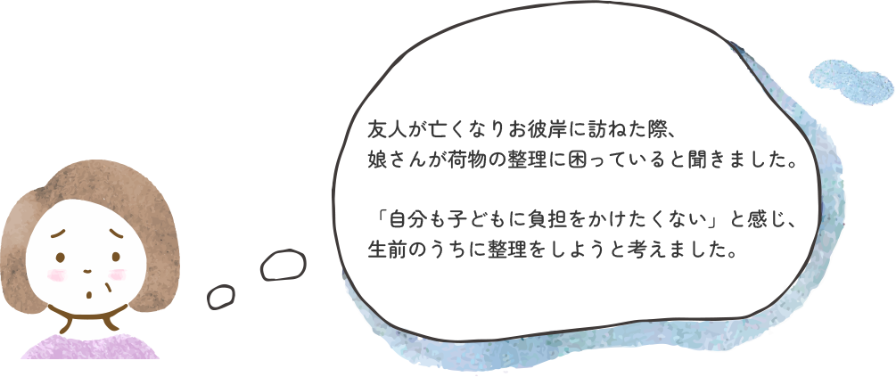 ご家族の負担を減らすための生前整理もお手伝いします。